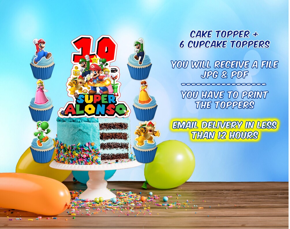 Mario Bros 3 cake topper, + cupcakes topper - Digital File - You have to print it-